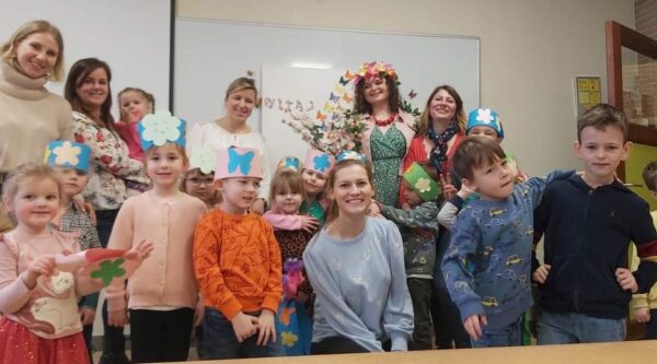 Najmłodsi uczniowie szukali budzących się do życia roślin oraz wypatrywali PANI WIOSNY...